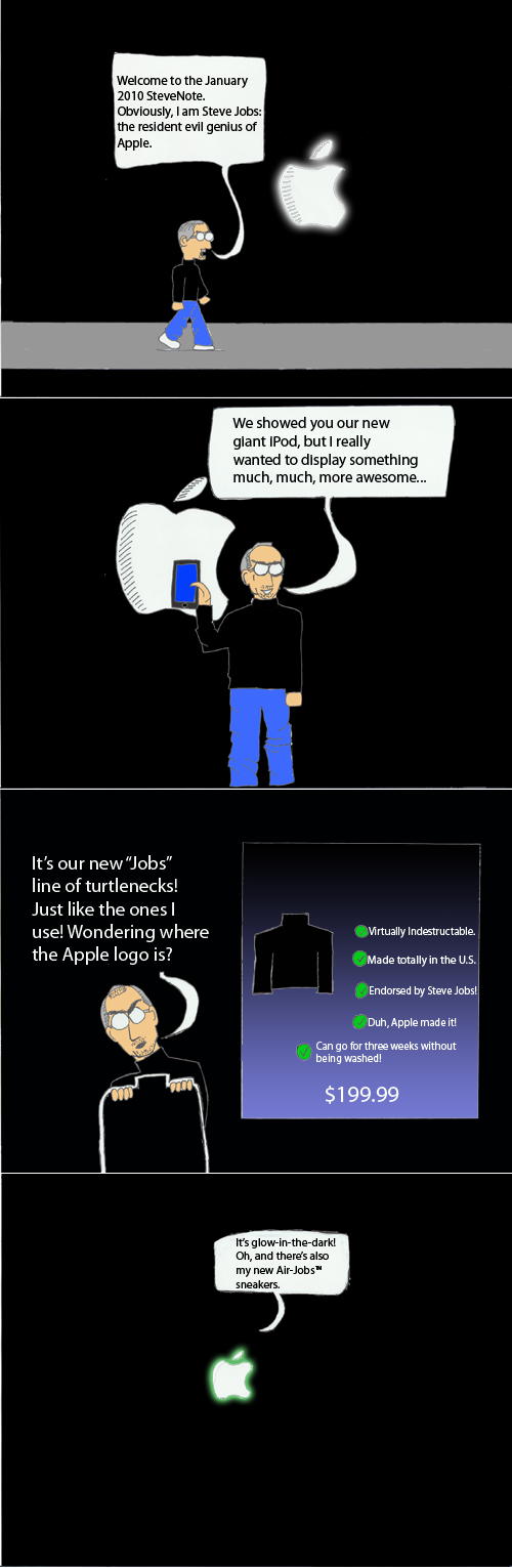 I always wanted to do a caricature of Steve, and the Keynote gave me that reason. Hehehehe.SteveNote2010